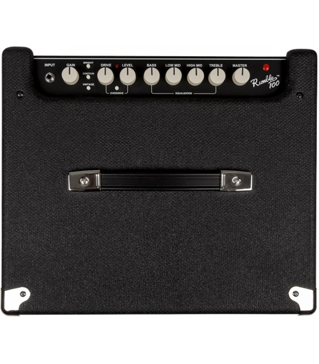 The new Fender Rumble version 3 100 watt 1x12" bass combo is an ideal choice for practice or studio play, with its great tone, small size and easy-to-use controls. Besides the 1x12" Fender special design speaker, its features include an aux. input, footswitch input, headphone output, bright, vintage and contour switches for tone shaping, independent overdrive channel with adjustable drive and level, along with separate gain and master volume controls and a four-band EQ.